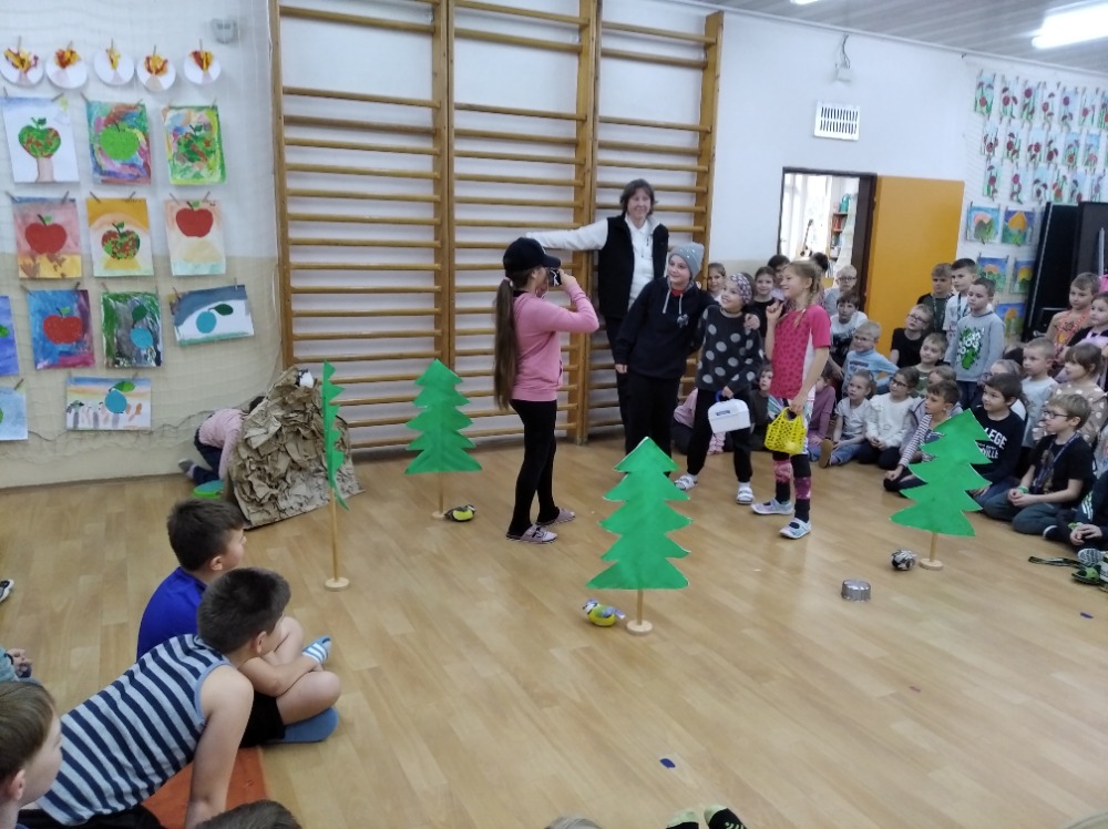 19. listopadu proběhla celodružinová akce s názvem: „Děti hrají divadlo“. Tentokrát se nejednalo o divadlo v pravém slova smyslu, protože zástupci jednotlivých družinek předváděli pantomimu. Zadané úkoly byly nelehké, ale děvčata a chlapci si mohli pomoct převleky a rekvizitami. Svých rolí se zhostili na jedničku. Pobavili diváky, kteří hádali, co jejich kamarádi předvádějí. Prvňáčci nám ukázali Večerníčka, tučňáky a klauny rozveselující svou královnu. Děti z druhých tříd krásně vystihly situace z rodinného prostředí a taky vychytralé zlodějíčky. Naštěstí všechno dobře dopadlo. Třeťáci rozesmáli publikum napodobením neodbytných komárů, fotbalovým utkáním a siláky s činkami. Velmi se líbila rodinka na výletě a turisté v cizí zemi v originálním podání starších školáků. Závěr patřil týmu z 2.B. V pěkné pantomimě, kterou sám vymyslel, se inspiroval životem v rodině. Všichni účinkující si zaslouží velkou pochvalu.